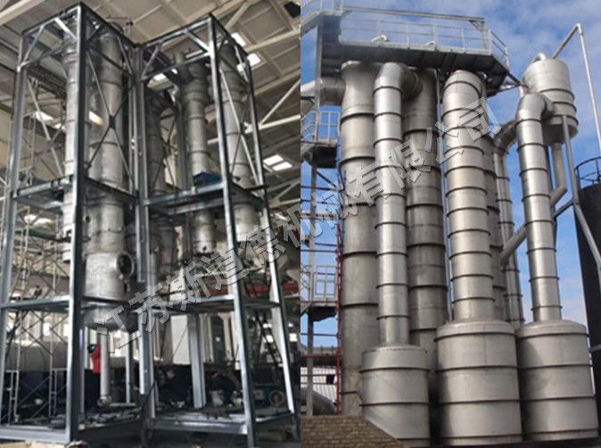 多效蒸發(fā)器適合物料50~200℃,適合于連續(xù)進(jìn)料,連續(xù)出料的生產(chǎn),具有濃縮比大,粘度范圍廣,傳熱效果好,處理量大等優(yōu)點(diǎn),適合熱敏性強(qiáng),濃度高,粘度較大及具有腐蝕性物料的蒸發(fā),廣泛用于果汁、葡萄糖、淀粉、制藥化工、農(nóng)藥、生物工程、化工污水處理等廢液回收行業(yè),特別適用于不易結(jié)垢、易揮發(fā)或熱敏性強(qiáng)的物料。