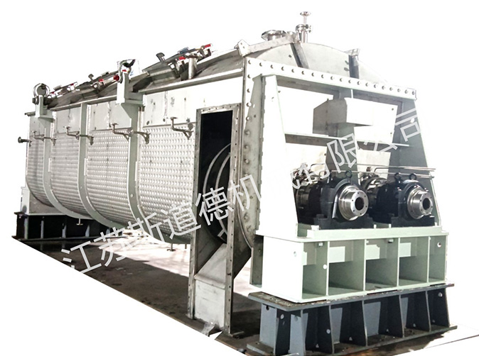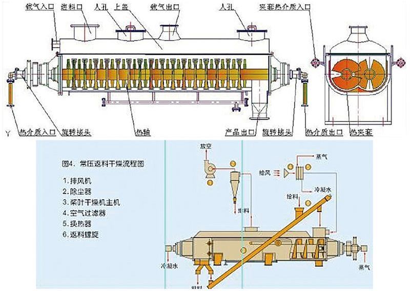 — 能耗低:由于間接加熱,沒有大量攜帶空氣而帶走熱量,干燥機(jī)外壁又設(shè)置夾套和保溫層,對(duì)漿狀物料,蒸發(fā)1kg水僅需1.1-1.3 kg飽和蒸汽。