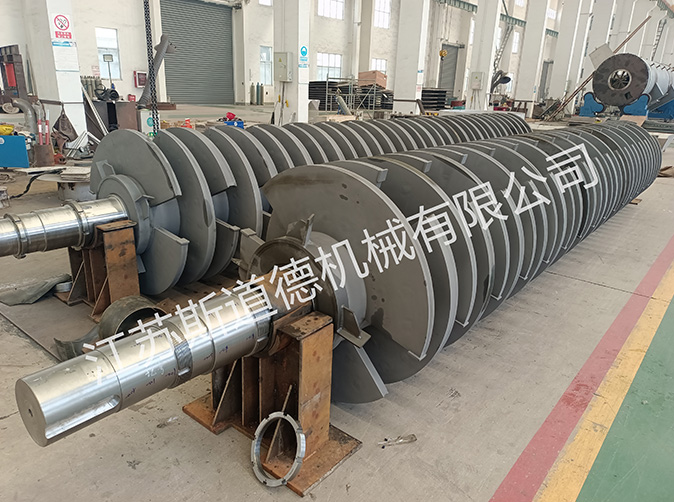 JYD型槳葉干燥機(jī)不僅外殼可進(jìn)行加熱,同時(shí)內(nèi)部轉(zhuǎn)子也進(jìn)行加熱,大大增加干燥面積,提高熱效率,確保物料徹底干燥,本機(jī)在帶有夾套的殼體內(nèi)有兩根或多根相互鑲嵌的轉(zhuǎn)子組成,各轉(zhuǎn)子上裝有多件加熱用的扇形空心槳葉。加熱介質(zhì)通過安裝在回轉(zhuǎn)軸端部的旋轉(zhuǎn)接頭進(jìn)入中空回轉(zhuǎn)軸及槳葉,傳熱干燥后,再通過旋轉(zhuǎn)接頭將冷凝水排出機(jī)外,該設(shè)備具有以下特點(diǎn):
