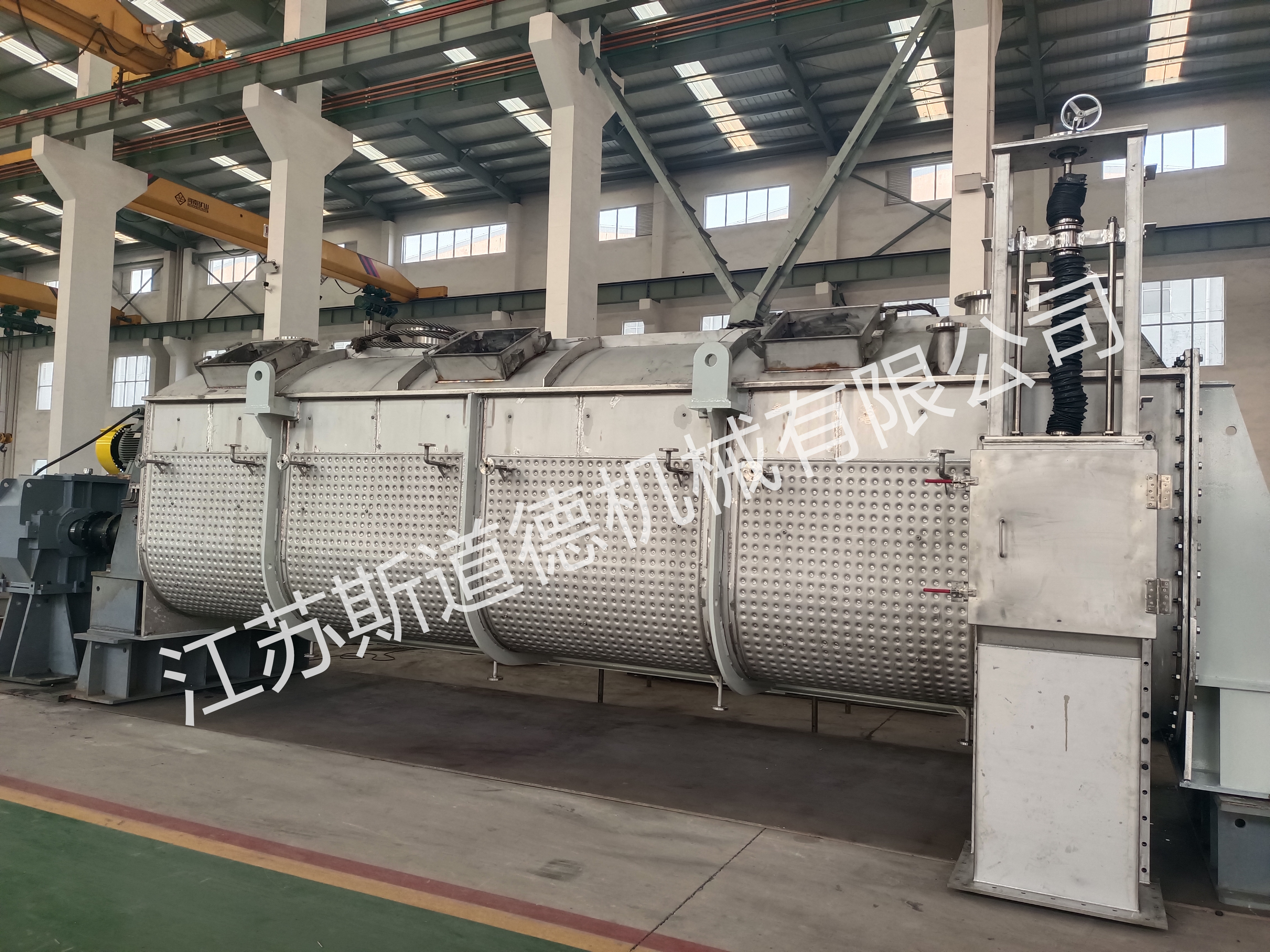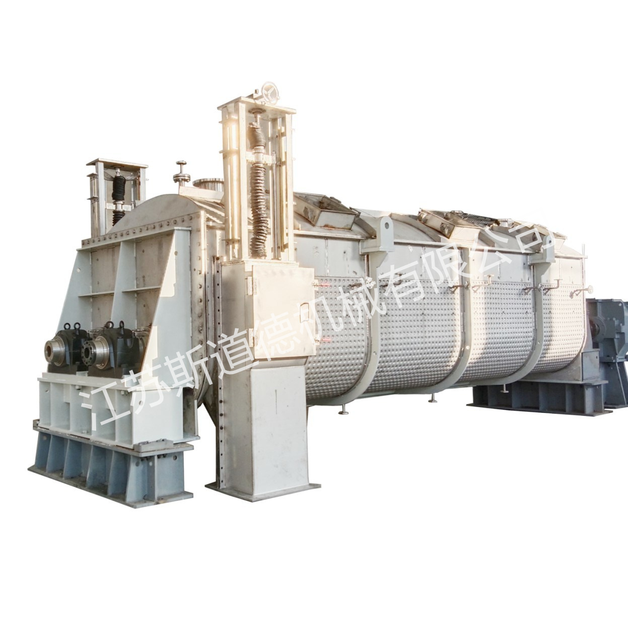— 能耗低:由于間接加熱,沒有大量攜帶空氣而帶走熱量,干燥機(jī)外壁又設(shè)置夾套和保溫層,對漿狀物料,蒸發(fā)1kg水僅需1.1-1.3 kg飽和蒸汽。